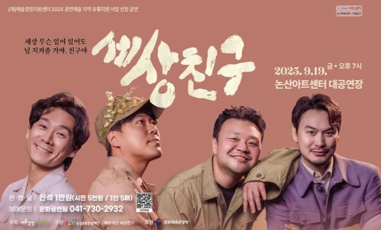 관람료는 전석 1만원(논산시민·사이버논산시민 50% 할인)으로 만 12세 이상 관람할 수 있으며, 논산아트센터 누리집에서 예매할 수 있다.