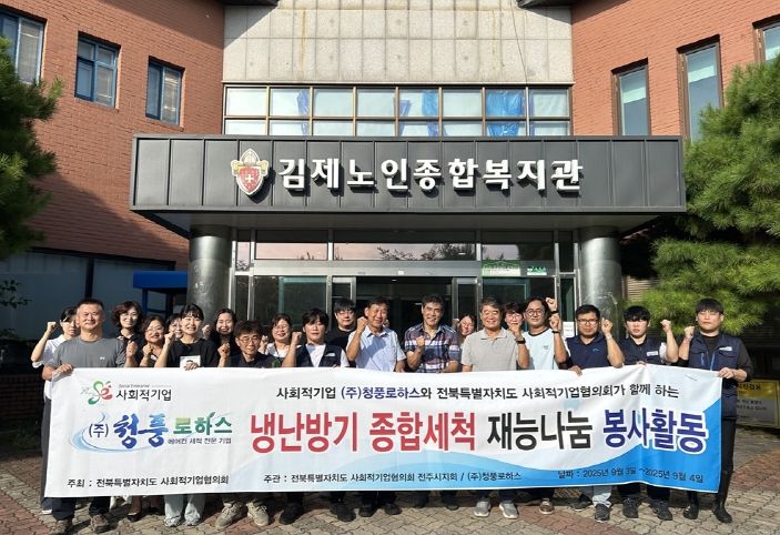 내고향뉴스 고광만 기자 | 김제시는 김제시노인종합복지관(관장 노기보)이 지난 4일부터 5일까지 이틀간 전북특별자치도 사회적기업협의회 김제시지회와 (주)청풍로하스의 후원으로 복지관 내 설치된 냉난방기 50여대에 대한 살균소독 작업을 진행했다고 밝혔다.
