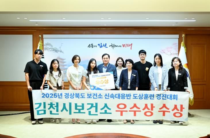 내고향뉴스 관리자 기자 | 김천시 보건소는 지난 9월 4일 구미시 새마을운동테마공원에서 열린 2025년 경상북도 보건소 신속대응반 도상훈련 경진대회에서 우수상을 수상했다.