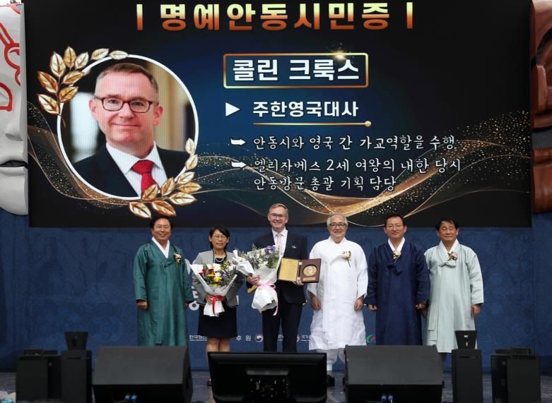 내고향뉴스 라정운 기자 | 안동시는 지난 10월 3일 열린 제23회 ‘안동의 날’ 기념식에서 콜린 제임스 크룩스(Colin James Crooks) 주한영국대사에게 명예안동시민증을 수여했다고 밝혔다.