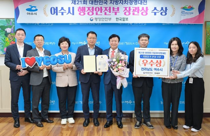 내고향뉴스 박성환 기자 | 여수시가 행정안전부와 한국일보가 공동으로 주최한 ‘제21회 대한민국 지방자치경영대전’에서 ‘지방물가 안정 분야’ 우수기관으로 선정돼 행정안전부장관 표창을 수상했다.