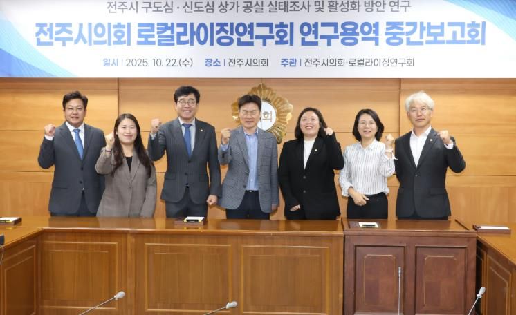 내고향뉴스 김익성 기자 | 전주시의회 로컬라이징연구회는 지난 22일 ‘전주시 구도심·신도심 상가 공실 실태조사 및 활성화 방안 연구’ 중간보고회를 개최했다고 23일 밝혔다.