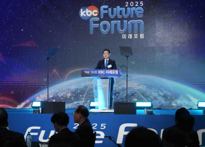 내고향뉴스 임정빈 기자 | 김영록 전라남도지사가 26일 여수 소노캄호텔에서 열린 KBC미래포럼에 서 전남의 산업대전환 전략을 제시했다.