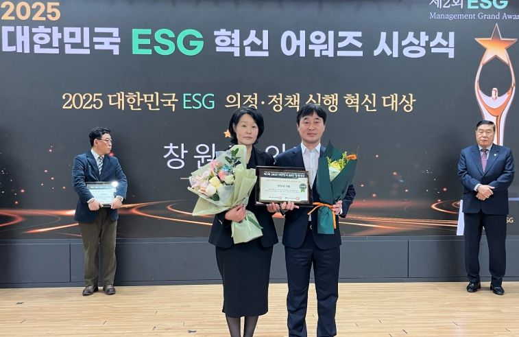 내고향뉴스 김익성 기자 | 창원특례시의회는 K-ESG 기준평가원이 주관하는 제2회 대한민국 ESG 경영대상에서 공공기관·언론 부문 ‘의정-정책 실행 혁신대상’을 받았다고 22일 밝혔다.