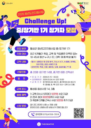 내고향뉴스 김익성 기자 | 횡성군은 지역 청년들의 사회 진출과 성장을 지원하기 위해 ‘2026 청년도전지원사업’ 참여자를 모집한다고 밝혔다.