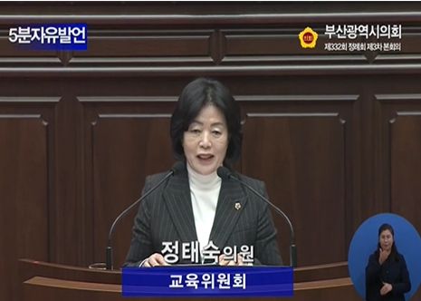 내고향뉴스 김익성 기자 | 부산광역시의회 교육위원회 정태숙 의원(국민의힘, 남구2)은 1월 26일 열린 제333회 임시회 제1차 본회의 5분 자유발언을 통해, 황령산 생태숲에 조성된 ‘김소월 시와 함께 하는 길’에 이어서 머무를 수 있는 ‘K-문학 향유 공간 조성’이 필요하다고 강조했다.