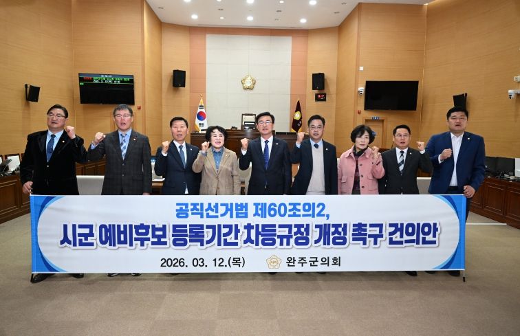 한편 완주군의회는 이번 건의안을 대통령비서실, 국회 행정안전위원회, 중앙선거관리위원회, 각 정당 대표, 전국 지방의회 등에 전달할 예정이다.