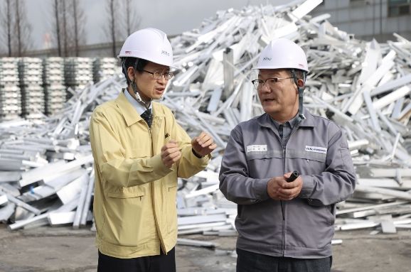 내고향뉴스 임정빈 기자 | 조달청은 18일 중동 상황 발생 이후 원자재 가격 변동성이 높아지는 가운데, 알루미늄 제조업체인 하이호경금속㈜(대표 서일수, 전북 군산시 소재)을 방문하여 알루미늄 수급 현황을 점검하고 현장의 목소리를 청취했다.
