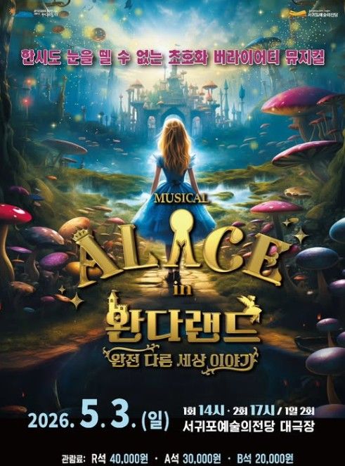 내고향뉴스 김명신 기자 | 서귀포예술의전당은 5월 가정의 달을 맞아 뮤지컬 '이상한 나라의 앨리스: 완다랜드'를 5월 3일 오후 2시와 5시, 총 2회에 걸쳐 서귀포예술의전당 대극장에서 선보인다.