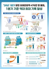 문체부, 2026년 1분기 방한 외래관광객 476만 명 돌파 1분기 기준 역대 최대 기록 달성