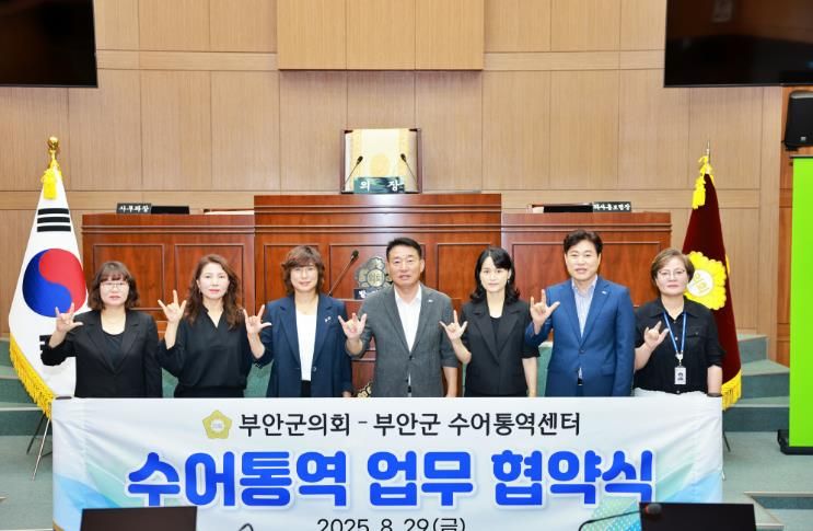 이번 협약은 부안군의회 본회의 생방송 송출 시 수어통역 영상 서비스를 제공하기 위한 것으로 청각·언어장애인의 알 권리 보장과 의정활동 참여 기회 확대를 위해 추진됐다.