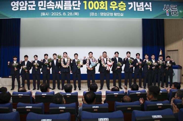 기념식에서 참석자들은 영암군민속씨름단의 100회 우승 영상 상영, 기념패·꽃다발 전달 등으로 영광의 역사를 돌아봤다.