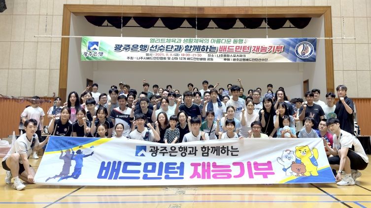 내고향뉴스 관리자 기자 | 광주은행(은행장 고병일)은 최근 광주은행 배드민턴 남자 실업팀 ‘비츠로 배드민턴단’이 나주시배드민턴협회 및 산하 12개 클럽 회원 100여 명을 대상으로 재능기부 봉사활동을 펼쳤다고 밝혔다.