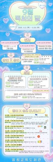 내고향뉴스 관리자 기자 | 음성교육도서관(관장 백경미)은 9월 독서의 달을 맞이하여 지역주민과 도서관 이용자들을 위해 ‘읽기예보: 오늘 읽음, 내일 맑음’을 주제로 풍성하고 다채로운 행사를 운영한다.