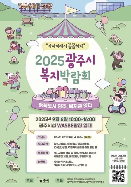 내고향뉴스 관리자 기자 | 광주시는 오는 9월 6일 광주시청 WASBE광장에서 ‘가까이에서 꼼꼼하게, 2025 광주시 복지박람회’를 개최한다고 29일 밝혔다.