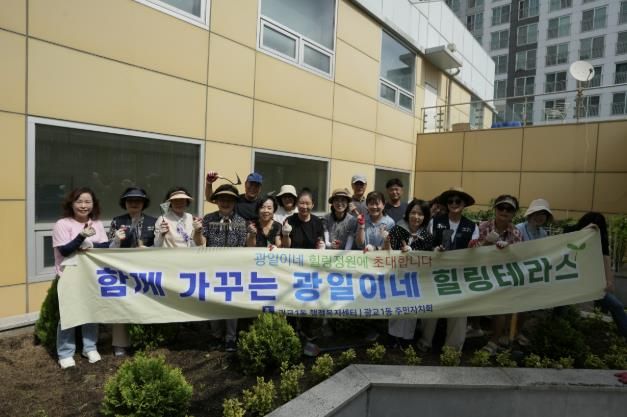‘광일이네 힐링테라스’는 주민자치회 활성화 사업의 일환으로 추진됐다. 바쁜 일상과 도시 생활 속에서 지친 주민들이 언제든 들러 잠시 쉬어갈 수 있도록 주민자치센터 내 유휴공간을 정원으로 탈바꿈시킨 것이다.