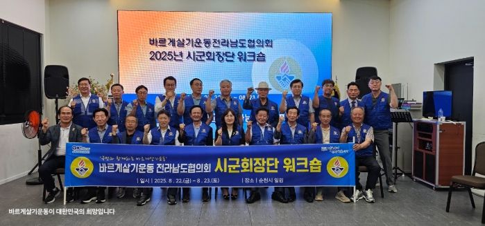 내고향뉴스 관리자 기자 | 바르게살기운동 전라남도협의회는 지난 22일부터 23일까지 1박 2일 일정으로 순천시 일원에서 ‘2025년 시군회장 워크숍’을 성황리에 개최했다고 밝혔다.