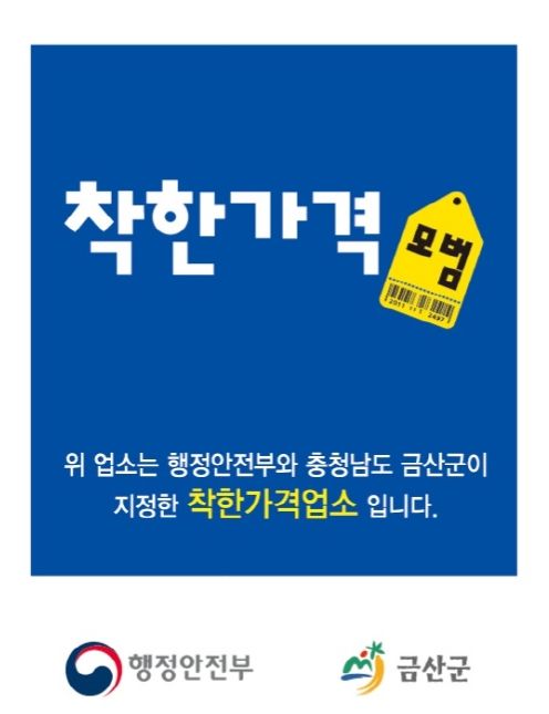 내고향뉴스 관리자 기자 | 금산군은 지역 물가 안정을 도모하고 군민의 생활비 부담을 덜기 위해 오는 11월 30일까지 착한가격업소를 신규 모집한다.
