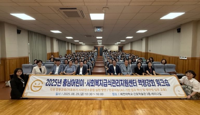 내고향뉴스 관리자 기자 | 충남도는 29일 혜전대 간호학술관에서 어린이·사회복지급식관리지원센터 직원 140여 명이 참석한 가운데, 특강에 이어 간담회 순으로 역량강화 연수를 실시했다고 밝혔다.