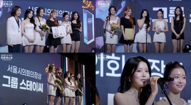스테이씨(수민, 시은, 아이사, 세은, 윤, 재이)는 지난 28일 서울 소공동 롯데호텔 크리스탈 볼룸홀에서 열린 '제7회 뉴시스 한류엑스포(2025 K-엑스포)' 시상식에서 서울시의회의장상을 수상했다.