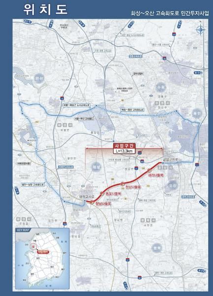 정명근 화성특례시장은 “화성~오산 고속화도로는 화성특례시의 동서축 주간선도로망으로서 기존 국지도와 지방도의 과밀 교통 수요를 효율적으로 분산시키고 교통 흐름을 크게 개선할 것”이라며, “일반구 체제 출범과 더불어 관내 30분 이동 시대 실현을 위해 사업을 차질 없이 추진하겠다”고 강조했다.