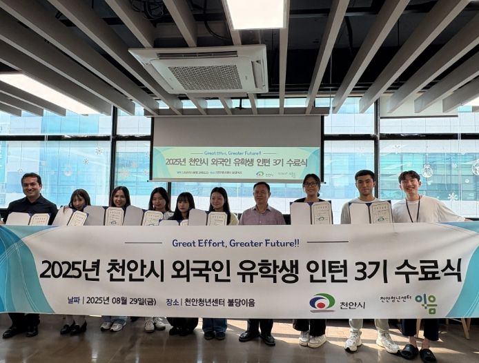 내고향뉴스 관리자 기자 | 천안시는 ‘2025년 외국인 유학생 인턴사업’에 참여한 외국인 유학생 11명이 지역 내 6개 기업서 근무를 완료했다고 29일 밝혔다.
