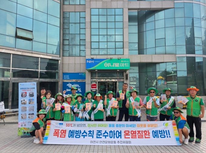 이번 폭염 안전캠페인은 이천시 지역자율방재단과 함께 추진했으며 폭염 시 ▲무더위 기상 상황 수시 확인 ▲물 충분히 마시기 ▲무더위 시간대 오후 2시~오후 5시 야외 활동 자제하기 등 폭염 국민행동요령을 집중적으로 홍보하고 농업인 등 폭염 취약계층에게는 폭염예방키트를 배부했다.