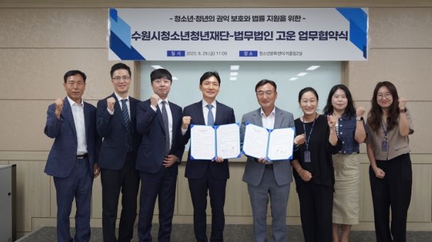 내고향뉴스 관리자 기자 | 수원청소년청년재단과 법무법인 고운은 8월 29일 업무협약을 체결하고 청소년‧청년을 위한 법률 지원과 진로 탐색 기회 확대에 함께 나서기로 했다.