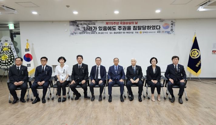 내고향뉴스 고광만 기자 | 충남도는 29일 충남보훈관 기획전시실에서 광복회 충남지부 주관으로 ‘제115주년 국권상실의 날(경술국치) 추념식’을 개최했다고 밝혔다.