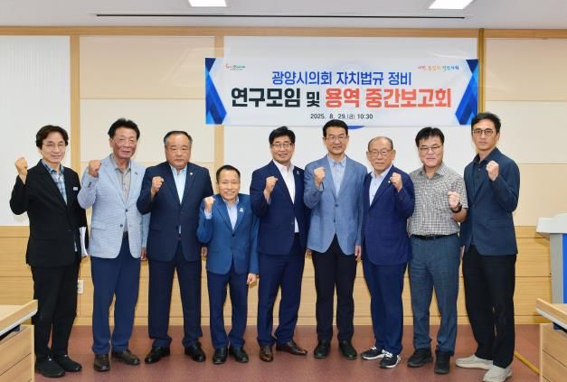내고향뉴스 고광만 기자 | 광양시의회 자치법규 정비 연구모임(대표의원 서영배(옥곡))은 지난 29일 시의회 상담실에서 ‘자치법규 정비 연구모임(2차) 및 용역 중간보고회’를 열고 자치법규 전반에 대한 실태 분석과 개선 방향을 논의했다고 밝혔다.