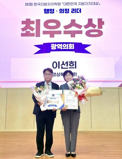 내고향뉴스 고광만 기자 | 이선희 경상북도의회 기획경제위원장(청도, 국민의힘)이 8월 29일 한국지방자치학회 주관으로 전북대학교에서 열린 '제1회 대한민국 지방자치대상'에서 행정·의정 리더부문 최우수상을 수상하는 영예를 안았다.