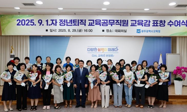 내고향뉴스 고광만 기자 | 광주시교육청은 29일 본청 대회의실에서 9월 1일자로 정년퇴직하는 교육공무직원에 대해 교육감 표창을 수여했다.