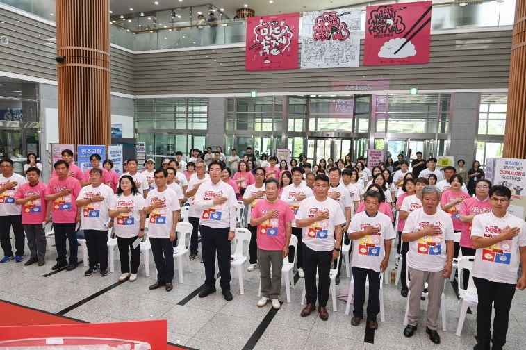 내고향뉴스 고광만 기자 | 원주시는 10월 24일부터 26일까지 열리는 ‘2025 원주만두축제’의 성공적인 개최를 위해, 29일 오후 3시 30분 시장 집무실에서 친환경축제 상생협약을 체결하고 1층 로비에서 시민 서포터즈 ‘만두덕후’를 출범했다.