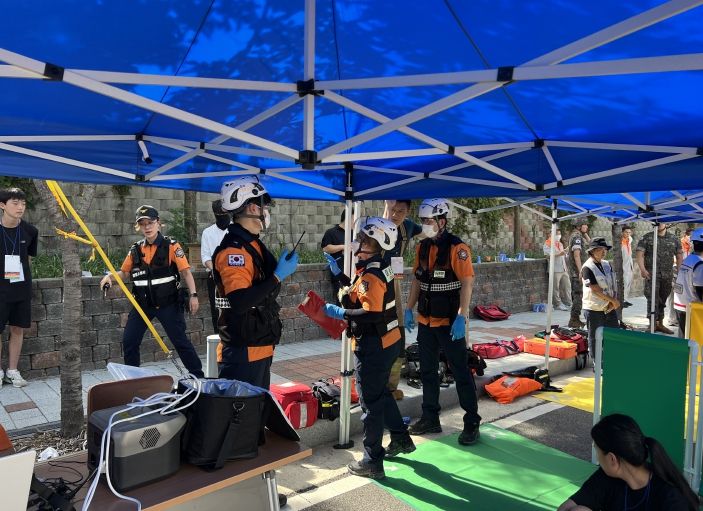 이날 훈련은 9월에 열리는 2025년 영동세계국악엑스포 행사 도중 지진 발생으로 인한 주요 행사장 붕괴 및 화재로 인해 다수의 인명피해가 발생하는 상황을 가정해 초기대응부터 재난현장 복구 단계까지 실전을 방불케 하는 고강도 훈련을 실시했다.
