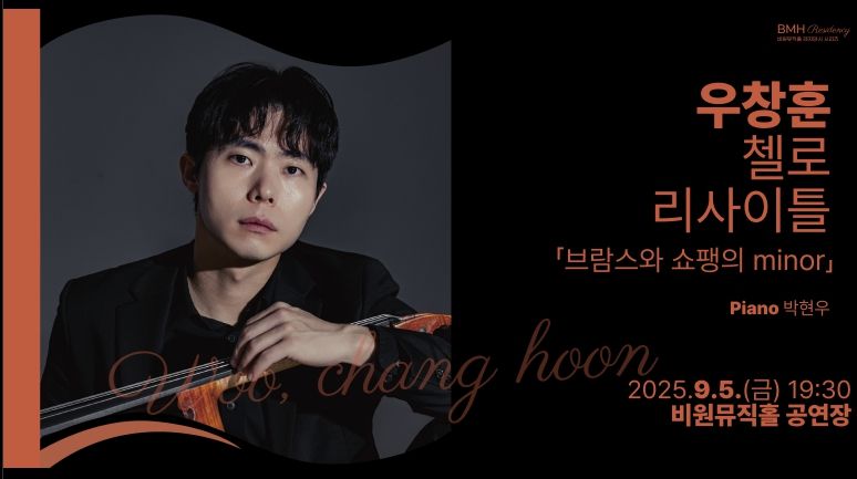 내고향뉴스 고광만 기자 | BMH 레지던시 6인의 리사이틀 시리즈 세 번째, 첼리스트 우창훈이 선보이는 브람스와 쇼팽이 작곡한 단조 구성의 첼로 소나타 콘서트 개최
