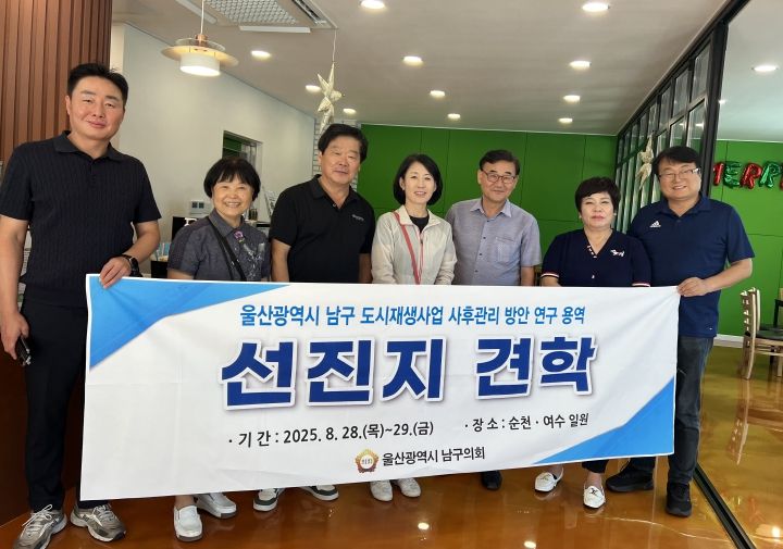 내고향뉴스 고광만 기자 | 울산 남구의회 의원연구단체인 도시재생플러스연구회는 28~29일 양일간 도시재생사업 완료 지역의 거점시설 운영 활성화 사례 및 사후관리 정책 우수사례 벤치마킹을 위해 전남 순천시와 여수시를 방문했다.