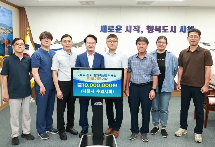 내고향뉴스 고광만 기자 | 사천시 수의사회가 지난 29일 지역인재 육성을 위해 (재)사천시인재육성장학재단에 1,000만 원의 장학금을 전달했다.