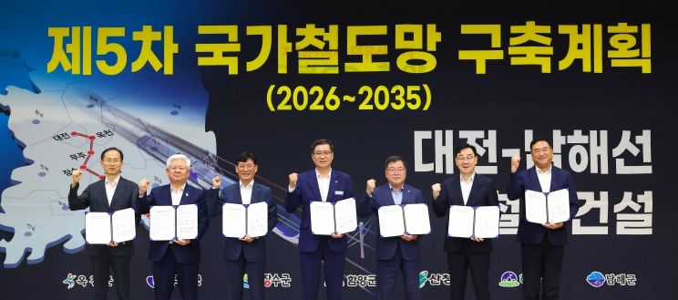 또 △철도 사각지대 해소 △관광벨트 구축 △고용 창출과 지역경제 활성화 △친환경 교통수단 확보 등을 담은 공동 건의문을 중앙정부에 전달하는 등 대전~남해선 철도건설 사업이 제5차 국가철도망 구축계획에 반드시 반영될 수 있도록 적극 협력하기로 했다.