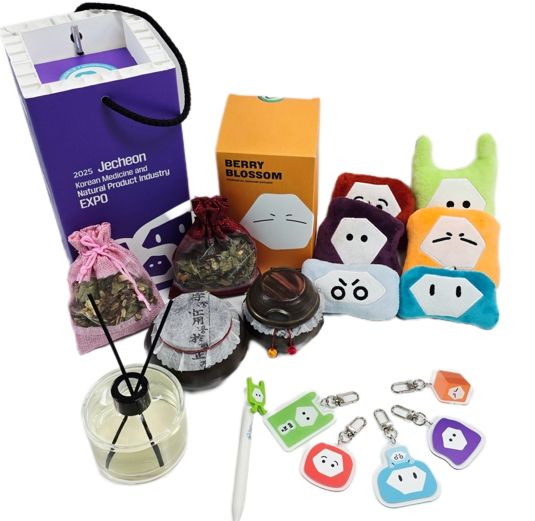 이 밖에도 ▲공식 캐릭터인형, ▲키링, ▲친환경 텀블러, ▲에코백, ▲펜‧스티커‧엽서를 포함한 문구세트, ▲약초 향기주머니, ▲찻잔세트 등 다채로운 상품이 마련됐다.