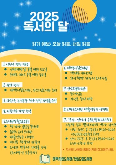태백시 교육과장은 “이번 독서의 달을 통해 시민들이 책과 더욱 가까워지고, 독서가 주는 지혜와 즐거움을 함께 나눌 수 있기를 기대한다”고 전했다.
