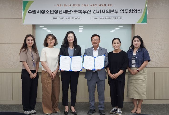 내고향뉴스 채필재 기자 | 수원청소년청년재단은 초록우산 경기지역본부와 청소년·청년 대상 서비스 지원 강화를 위한 업무협약을 체결했다고 29일 밝혔다.