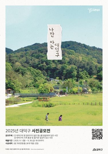 내고향뉴스 채필재 기자 | 대전 대덕구는 오는 9월 1일부터 26일까지 ‘2025년 대덕구 사진공모전 – 나만 아는 #대덕구’를 개최한다고 밝혔다.