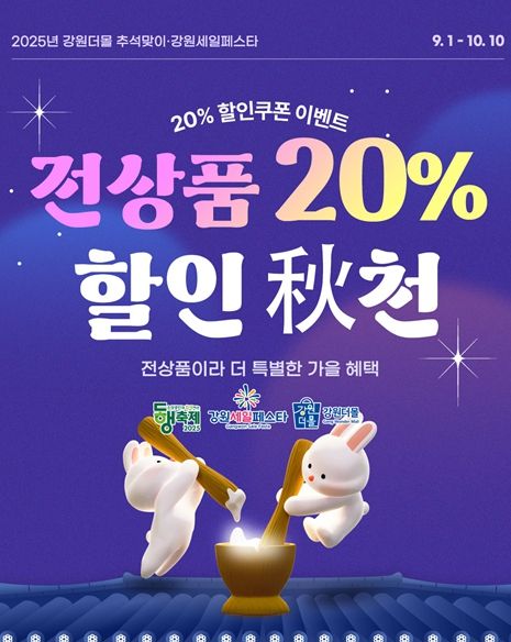 내고향뉴스 채필재 기자 | 강원특별자치도의 대표 온라인 쇼핑몰 ‘강원더몰’이 2025년 추석을 맞아 ‘동행축제· 강원세일축제(페스타)’와 함께 9월 1일부터 10월 10일까지 40일간 ‘추석맞이 기획전’을 개최한다.