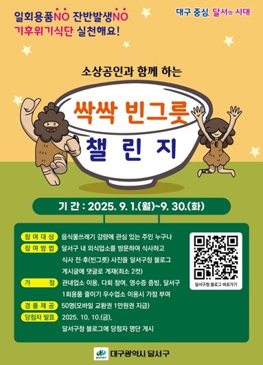 “달서구, 자원순환의 날 기념 ‘용기내·빈그릇’ 챌린지… 9월 한 달간 SNS 참여 이벤트”