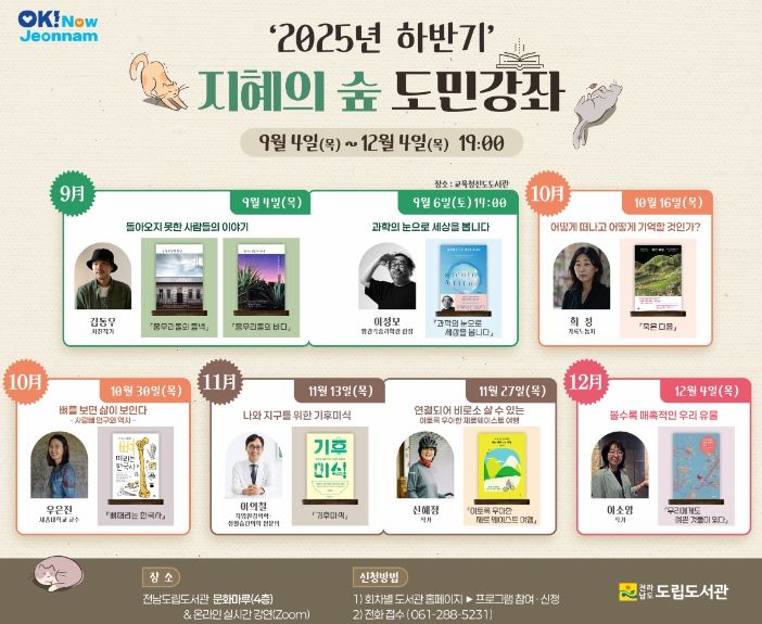자세한 내용은 전남도립도서관 누리집을 통해 프로그램 운영 및 신청을 확인할 수 있으며. 전화로 문의하면 된다.