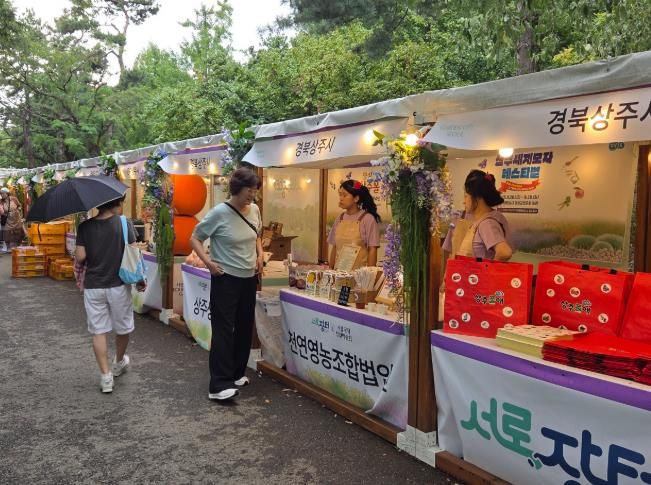 ‘상주시 모두장터(지역소농, 소상인으로 구성)’15개 생산자단체가 직거래 장터에 참여해 ▲제철과일(샤인머스캣, 복숭아, 배) ▲가공품(뽕잎가루, 과일즙, 포도청, 요거트, 치즈) ▲ 수공예품 등 다양한 농산물과 가공식품 등 특색 있는 우수 농특산품을 서울시민들에게 선보였다.