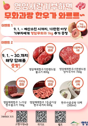 영암군은 9월 ‘영암사랑기부하면 무화과랑 한우가 우르르’ 이벤트를 진행하고 있다.