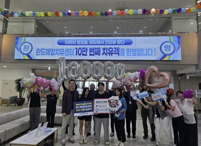 군은 완도해양치유센터 치유객 10만 명 달성 기념 환영 이벤트를 시작으로 10만 보 맨발 걷기 챌린지, 해양치유 건강 릴레이, 10만 축하 포토존 SNS 인증 이벤트 등을 9월 30일까지 진행한다.