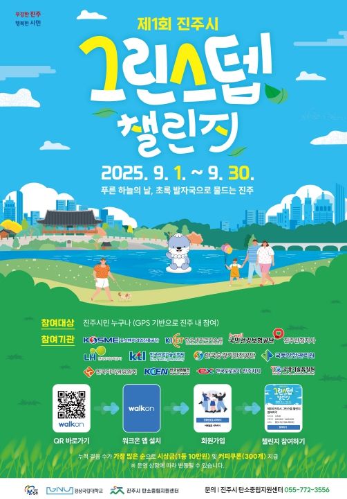 내고향뉴스 고광만 기자 | 진주시 탄소중립지원센터(센터장 기서진 경상국립대학교 환경공학과 교수)와 진주시는 9월 1일부터 30일까지 한 달간 ‘제1회 진주시 그린스텝 챌리지’를 진행한다.