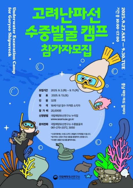 국가유산청, 바닷속으로 떠나는 시간 여행 '고려난파선 수중발굴 캠프' 참가자 모집